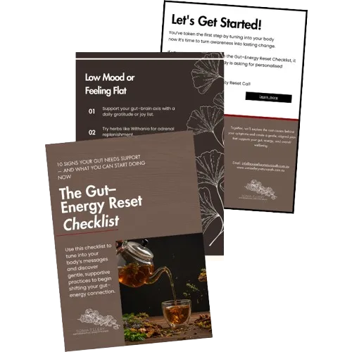Download this practical checklist to spot the silent gut, thyroid, and nervous system imbalances behind fatigue, bloating, anxiety, and brain fog—so you can take the first step to feeling light, calm, and energised again.